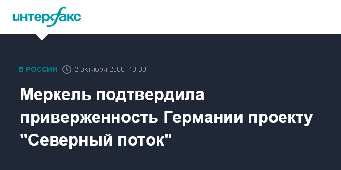 Москва. 2 октября. INTERFAX.RU - Германия заинтересована в строительстве газопровода "Северный поток" так же, как и другие страны Европы, заявила федеральный канцлер ФРГ Ангела Меркель.
