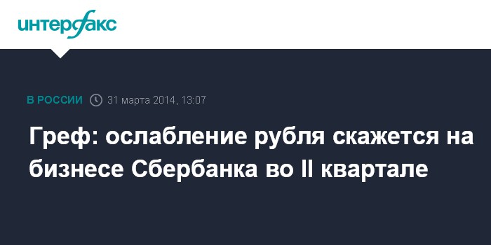 Греф: ослабление рубля скажется на бизнесе Сбербанка во II квартале