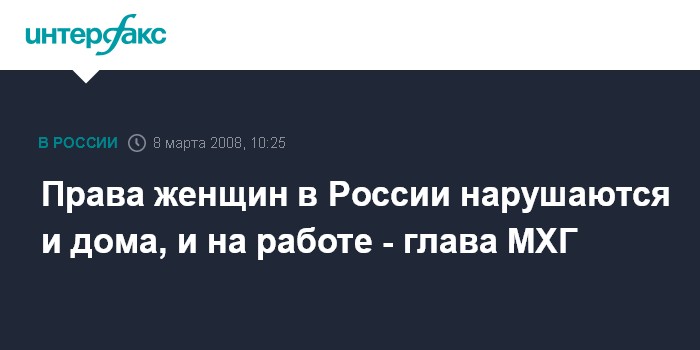 Москва. 8 марта. ИНТЕРФАКС - В России серьезно нарушаются права женщин, считает глава старейшей в стране правозащитной организации, Московской Хельсинкской группы (МХГ), Людмила Алексеева.