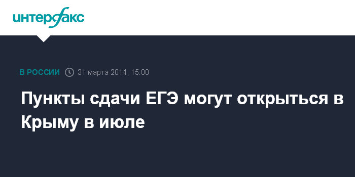 "Будут открыты пункты сдачи ЕГЭ в четырех городах Крыма, сдающих мы обеспечим всем необходимым", - сказал он в понедельник "Интерфаксу".