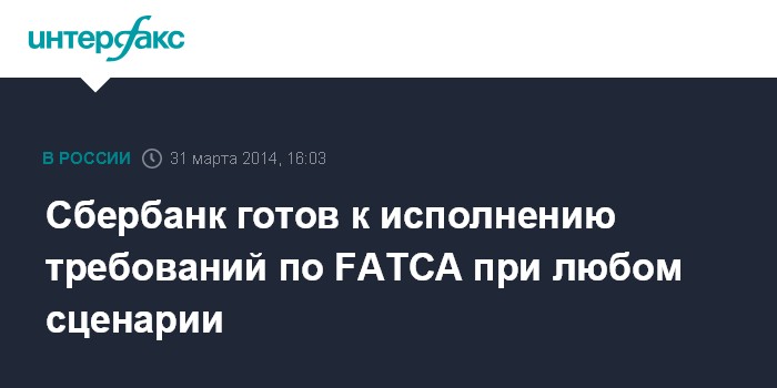 Сбербанк готов к исполнению требований по FATCA при любом сценарии