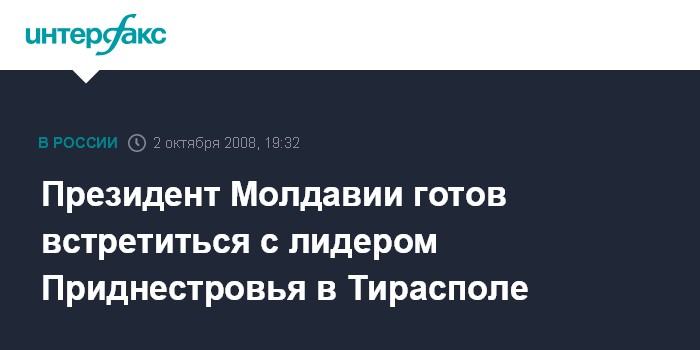 Москва. 2 октября. INTERFAX.RU - Президент Молдавии Владимир Воронин на состоявшейся в четверг встрече с главой миссии ОБСЕ Филиппом Ремлером подтвердил готовность встретиться с лидером Приднестровья Игорем Смирновым в Тирасполе.