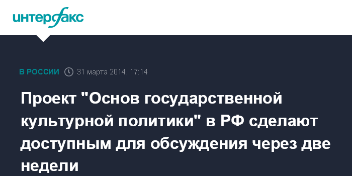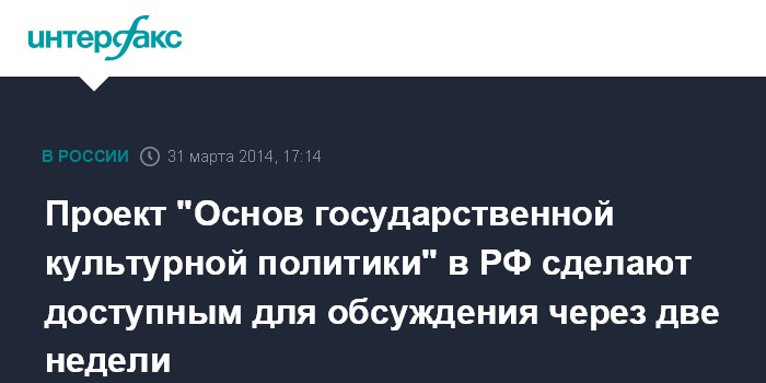 Проект "Основ государственной культурной политики" в РФ сделают доступным для обсуждения через две недели
