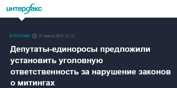 Депутаты-"единороссы" Александр Сидякин и Андрей Красов, а также Игорь Зотов ("Справедливая Россия") предложили усилить ответственность за нарушение установленного порядка организации публичных мероприятий и ввести за это штрафы до одного миллиона рублей, а также наказание до пяти лет лишения свободы.
