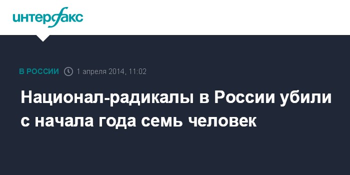 Москва. 1 апреля. INTERFAX.RU - Семь человек погибли с начала 2014 года в России в результате нападений на почве ксенофобии и национальной ненависти, сообщили "Интерфаксу" во вторник в правозащитном центре "Сова".