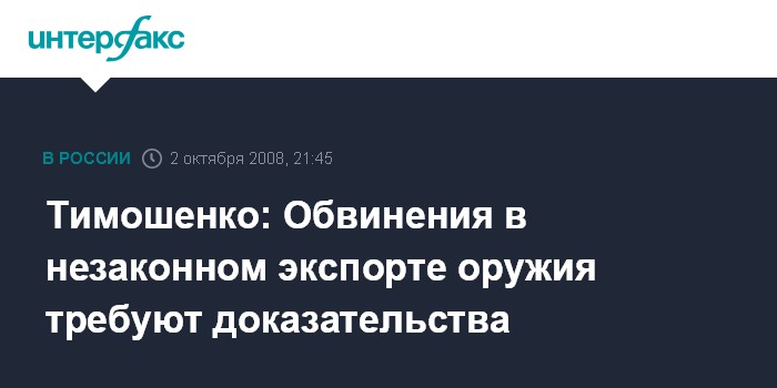 Тимошенко: Обвинения в незаконном экспорте оружия требуют доказательства