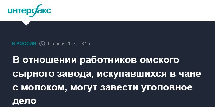Москва. 1 апреля. INTERFAX.RU - Управление Роспотребнадзора по Омской области передало в региональное управление СКР материалы проверки ООО "Торговый дом "Сыры", работники которого сняли на видео вечеринку, во время которой купались в технологической емкости с молоком.