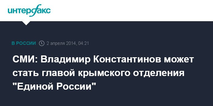 Москва. 2 апреля. INTERFAX.RU - Спикер Верховного совета Крыма Владимир Константинов возглавил оргкомитет по проведению учредительной конференции по созданию регионального отделения партии "Единая Россия", сообщает газета "Известия" в среду.