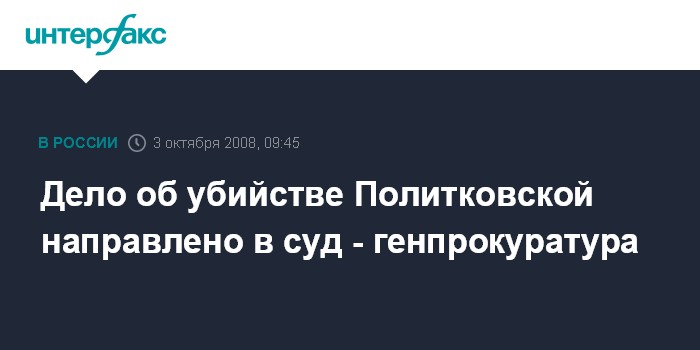 Москва. 3 октября. INTERFAX.RU - Генеральная прокуратура РФ утвердила обвинительное заключение по уголовному делу об убийстве журналистки "Новой газеты" Анны Политковской.