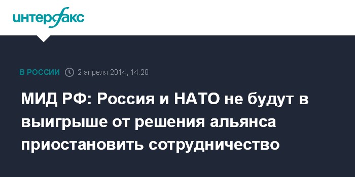 Москва. 2 апреля. INTERFAX.RU - Ни Россия, ни страны Североатлантического альянса не выиграют от решения Совета НАТО приостановить сотрудничество с РФ, заявили в МИД России.