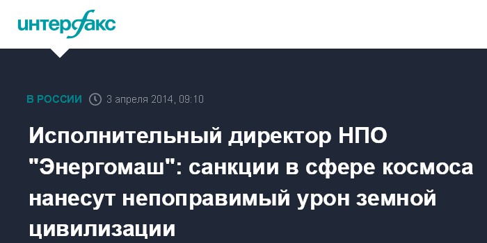 Исполнительный директор НПО "Энергомаш": санкции в сфере космоса нанесут непоправимый урон земной цивилизации