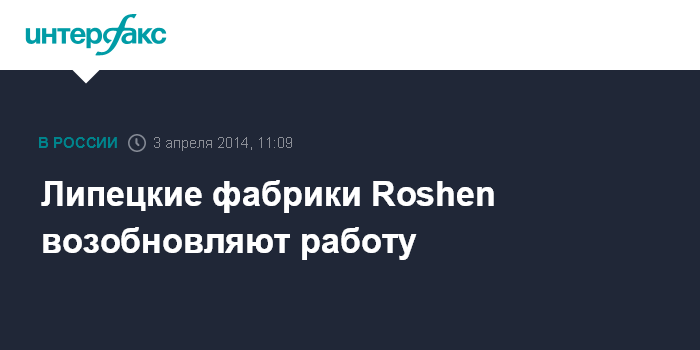 Москва. 3 апреля. INTERFAX.RU - ОАО "Липецкая кондитерская фабрика "Рошен", входящая в украинскую корпорацию Roshen, в четверг возобновила работу.