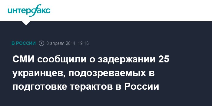 Москва. 3 апреля. INTERFAX.RU - 25 граждан Украины, среди которых трое активистов "Правого сектора", задержаны по подозрению в подготовке диверсий на территории России, сообщила телекомпания НТВ в четверг со ссылкой на данные спецслужб.