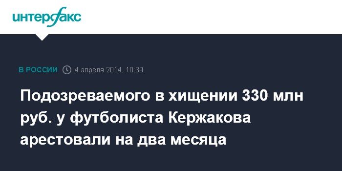 Подозреваемого в хищении 330 млн руб. у футболиста Кержакова арестовали на два месяца