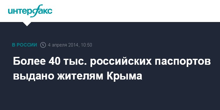 Более 40 тыс. российских паспортов выдано жителям Крыма