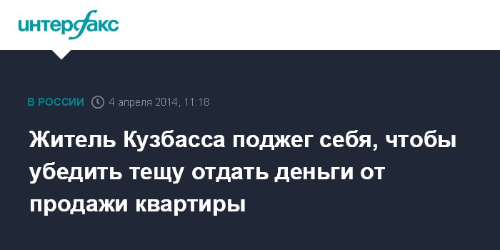Житель Кузбасса поджег себя, чтобы убедить тещу отдать деньги от продажи квартиры
