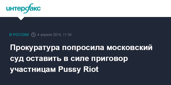 Москва 4 апреля. ИНТЕРФАКС - Прокуратура просит суд оставить в силе приговор участницам панк-группы Pussy Riot, осужденных за акцию в храме Христа Спасителя.