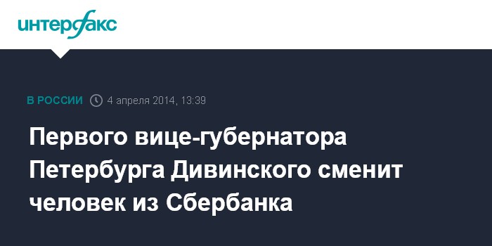 Первого вице-губернатора Петербурга Дивинского сменит человек из Сбербанка