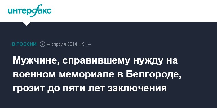 Москва. 4 апреля. INTERFAX.RU - Полиция Белгорода возбудила уголовное дело в отношении жителя Новосибирской области, который осквернил мемориальный комплекс "Вечный огонь" в центре города, сообщает УМВД по региону в пятницу.