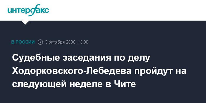 Cудебные заседания по делу Ходорковского-Лебедева пройдут на следующей неделе в Чите