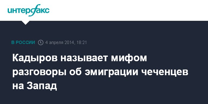 Москва. 4 апреля. INTERFAX.RU - Глава Чеченской республики Рамзан Кадыров опроверг информацию о миграции жителей республики на Запад.