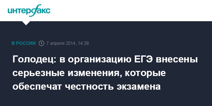 "Установлены особые правила для того, чтобы экзамен проводился честно. В этом смысле введены серьезные изменения", - сообщила Голодец в ходе встречи премьер-министра Дмитрия Медведева с вице-премьерами в понедельник.