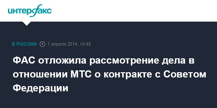 ФАС отложила рассмотрение дела в отношении МТС о контракте с Советом Федерации