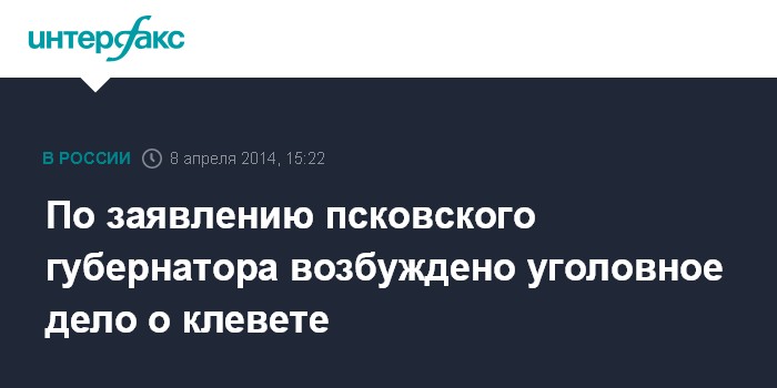 По заявлению псковского губернатора возбуждено уголовное дело о клевете