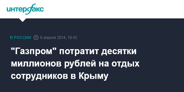 "Газпром" потратит десятки миллионов рублей на отдых сотрудников в Крыму