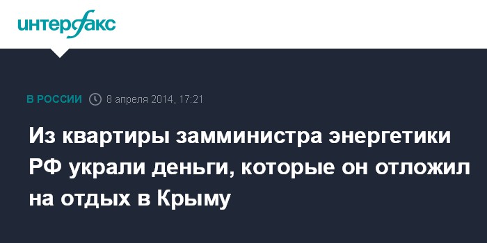 Из квартиры замминистра энергетики РФ украли деньги, которые он отложил на отдых в Крыму