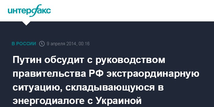 Путин обсудит с руководством правительства РФ экстраординарную ситуацию, складывающуюся в энергодиалоге с Украиной