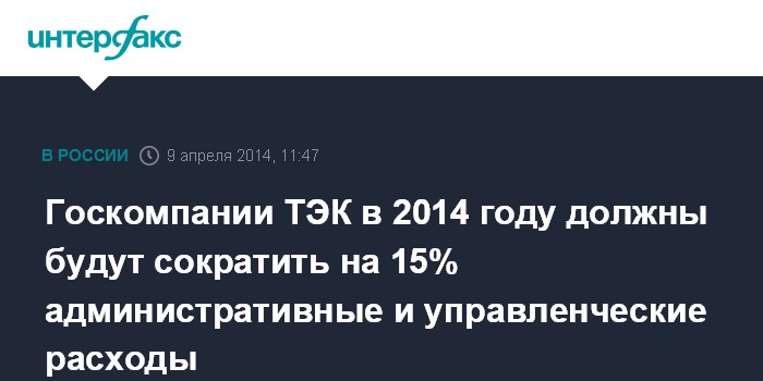 Госкомпании ТЭК в 2014 году должны будут сократить на 15% административные и управленческие расходы