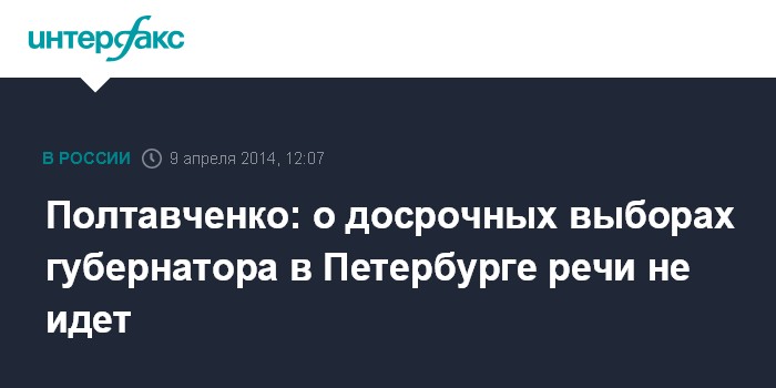 Москва. 9 апреля. INTERFAX.RU - Вопрос досрочных выборов губернатора в 2014 году не значится в повестке дня, сообщил губернатор Санкт-Петербурга Георгий Полтавченко журналистам в среду.