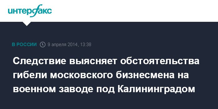 Следствие выясняет обстоятельства гибели московского бизнесмена на военном заводе под Калининградом