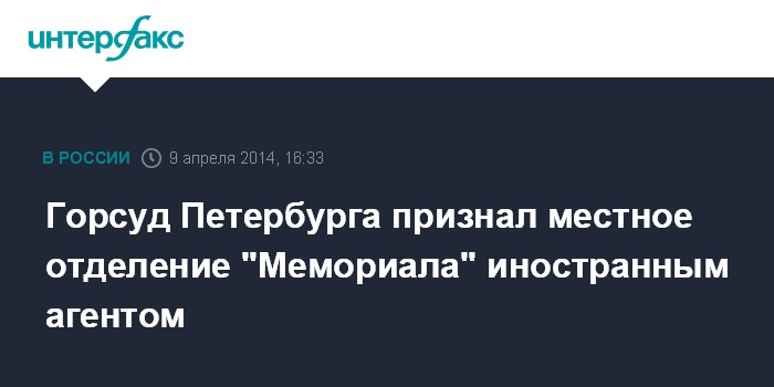 Горсуд Петербурга признал местное отделение "Мемориала" иностранным агентом