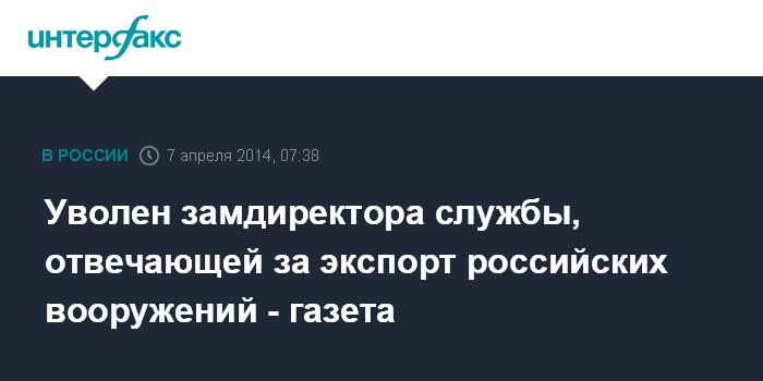 Уволен замдиректора службы, отвечающей за экспорт российских вооружений - газета