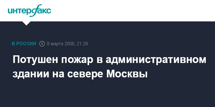 Москва. 8 марта. ИНТЕРФАКС-МОСКВА - Столичные пожарники в 20:45 мск субботы ликвидировали пожар в двухэтажном административном здании на севере Москвы, сообщил "Интерфаксу" начальник пресс-службы Главного управления МЧС по Москве Евгений Бобылев.