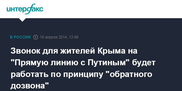 Каждый желающий позвонить президенту с полуострова услышит сообщение о том, что он дозвонился в редакцию программы "Прямая линия с Владимиром Путиным", и через несколько секунд ему поступит звонок, на который следует ответить.