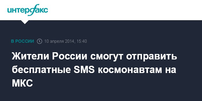 "12 апреля присоединиться к акции сможет каждый желающий. Для того, чтобы SMS было доставлено на МКС, абонентам сотового оператора необходимо отправить текстовое сообщение на короткий сервисный номер 1204 (стоимость сообщения 0 рублей). В течение всего дня самые интересные сообщения также будут публиковаться в официальном твиттере акции @SMSnaMKS", - говорится в сообщении, поступившем в "Интерфакс" в четверг.
