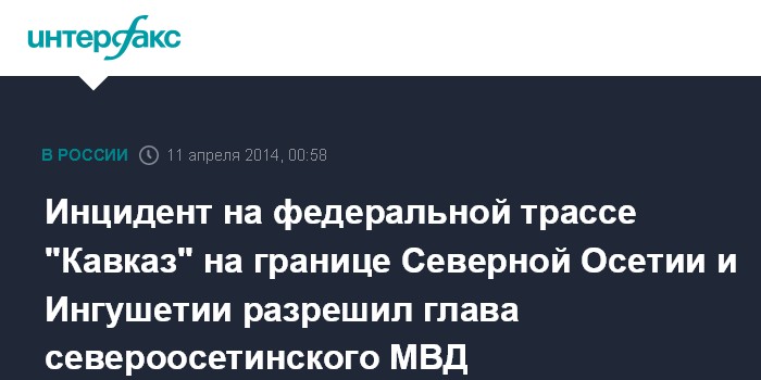 Владикавказ. 11 апреля. ИНТЕРФАКС-ЮГ - Министр внутренних дел Северной Осетии Артур Ахметханов разрешил инцидент на федеральной трассе "Кавказ" на границе Северной Осетии и Ингушетии, которую перекрыли местные жители, сообщили агентству "Интерфакс-Юг" в пресс-службе североосетинского МВД.
