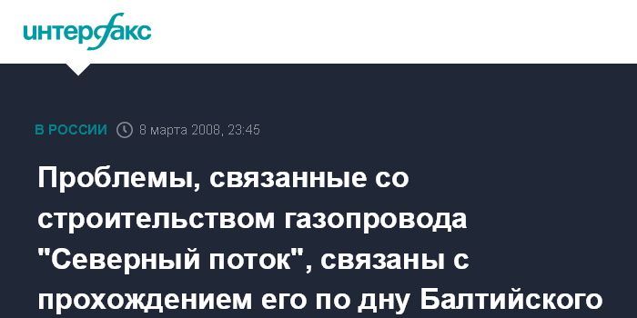 Москва. 8 марта. ИНТЕРФАКС - Канцлер Германии Ангела Меркель считает, что основные проблемы, которые возникли при строительстве газопровода "Северный поток", возникли при его прохождении по дну Балтийского моря.