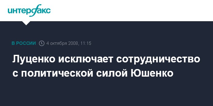 Москва. 4 октября. INTERFAX.RU - Лидер "Народной самообороны", министр внутренних дел Юрий Луценко исключает сотрудничество с нынешней или будущей политической силой президента Виктора Ющенко. Об этом он заявил в интервью "Зеркалу недели".