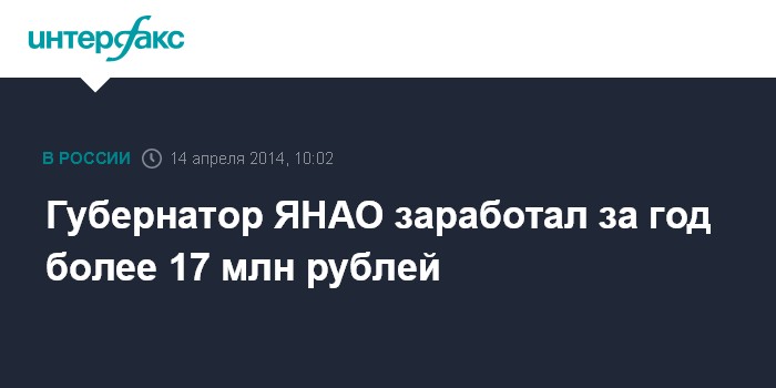 Губернатор ЯНАО заработал за год более 17 млн рублей
