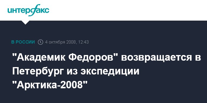 "Академик Федоров" возвращается в Петербург из экспедиции "Арктика-2008"