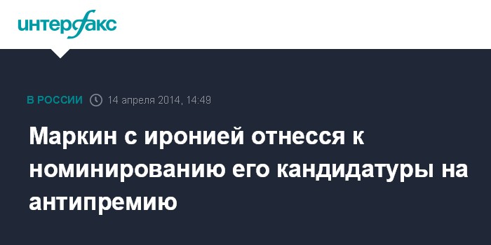 Маркин с иронией отнесся к номинированию его кандидатуры на антипремию
