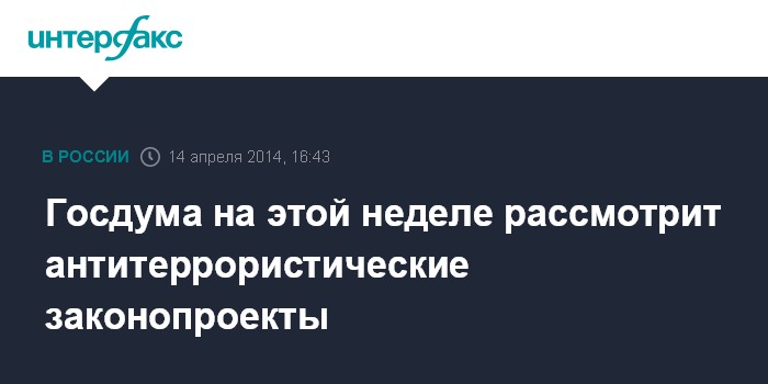 Москва. 14 апреля. INTERFAX.RU - Госдума рассмотрит в пятницу во втором чтении законопроекты из "антитеррористического пакета", заявил первый вице-спикер Александр Жуков.