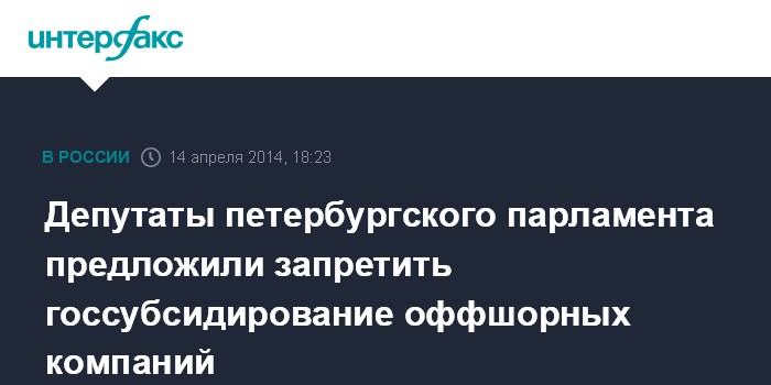 Депутаты петербургского парламента предложили запретить госсубсидирование оффшорных компаний