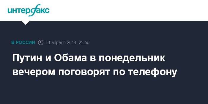 Москва. 14 апреля. INTERFAX.RU - Пресс-секретарь президента РФ Дмитрий Песков подтвердил, что в понедельник вечером состоится телефонный разговор между главой государства Владимиром Путиным и его американским коллегой Бараком Обамой.