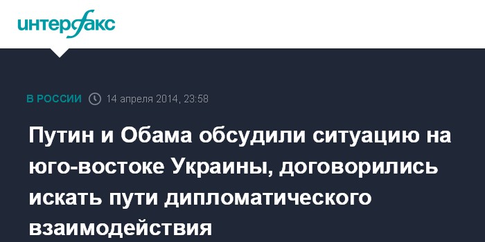 Путин и Обама обсудили ситуацию на юго-востоке Украины, договорились искать пути дипломатического взаимодействия