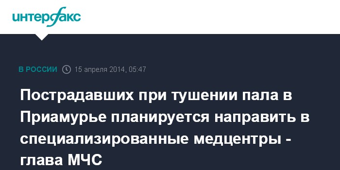Владивосток. 15 апреля. INTERFAX.RU - МЧС следит за состоянием девятерых пострадавших при тушении пала в Амурской области, сообщил глава министерства Владимир Пучков.